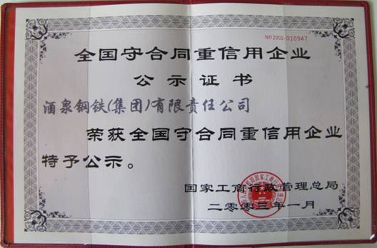 全國(guó)守合同重信用企業(yè)